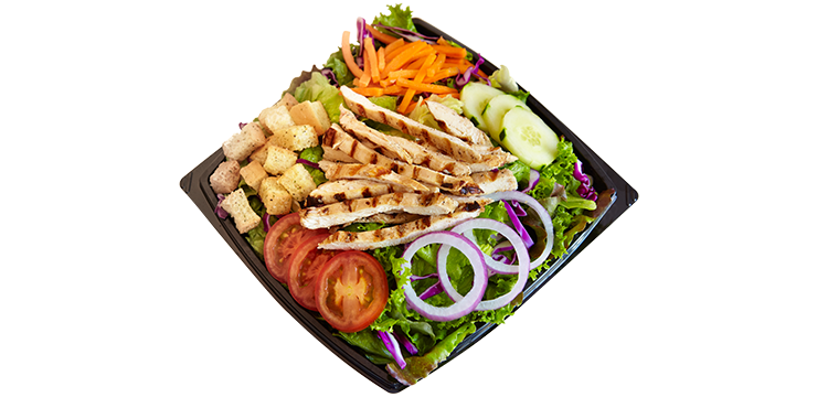 Enjoy a refreshing mix of crisp greens, juicy grilled chicken, and fresh veggies, topped with crunchy croutons. A light yet satisfying meal!